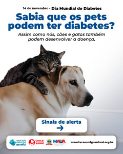 Seu pet também precisa de atenção! No Dia Mundial do Diabetes, a Associação Amigo Animal reforça um alerta importante: o diabetes não afeta apenas os