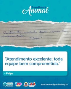 Recebemos com grande orgulho o feedback do Felipe, um reconhecimento que reforça o propósito e a dedicação que movem a Associação Amigo Animal todos os dias.
