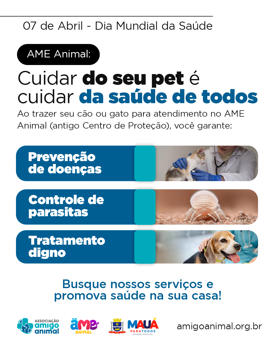 Neste Dia Mundial da Saúde, o convite é para que todos reconheçam a importância desse cuidado integrado. Ao buscar atendimento no AME Animal, você contribui para que seu pet viva mais e melhor — e ainda ajuda a construir uma comunidade mais saudável para todos.