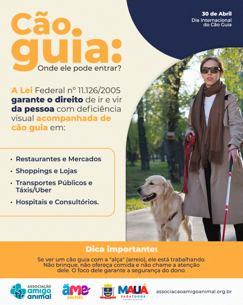 Respeito, acessibilidade e parceria que transforma vidas Eles são os olhos de quem não vê. No Dia do Cão-Guia, a Associação Amigo Animal reforça a importância desses verdadeiros parceiros na promoção da autonomia, segurança e qualidade de vida de pessoas com deficiência visual. Mais do que companheiros, os cães-guia são instrumentos essenciais de acessibilidade. Treinados […]